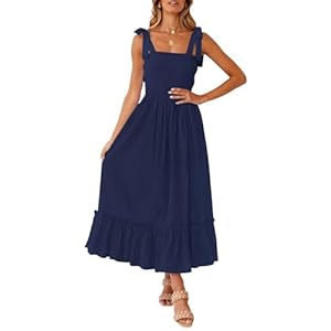 ZESICA Women’s 2025 Summer Boho Spaghetti Strap Square Neck Solid Color Ruffle A Line Beach Long Maxi Dress