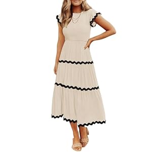 ZESICA Women’s Summer Flutter Short Sleeve Smocked Midi Dress Casual High Waist Rickrack Tiered Flowy Dresses