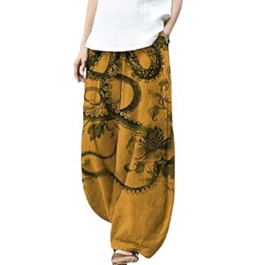 Womens Baggy Linen Pants Barrel Wide Leg Casual Loose Flowy Hippie Lantern Trousers with Elastic Waist for Summer