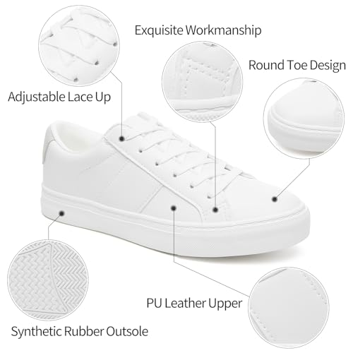 Adokoo Women’s Fashion Sneakers PU Leather Casual Shoes White Tennis Low Top Shoes Womens Lace Up Sneakers