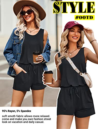 ADOME Rompers for Women Summer Sleeveless Scoop Neck Tank Top Casual Short Jumpsuit Rompers with Pockets