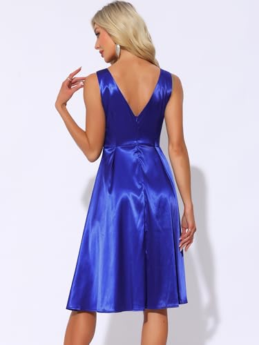 Allegra K Women’s Satin Sleeveless Dress Boat Neck A-Line Cocktail Evening Dresses