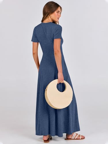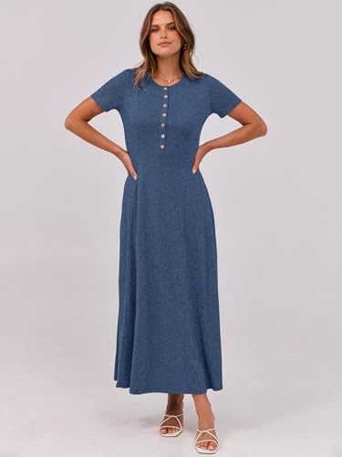 ANRABESS Women Summer Casual Short Sleeve Maxi Dress Button Fit & Flare A-Line Flowy Long Shirt Dresses 2025 Beach Outfits