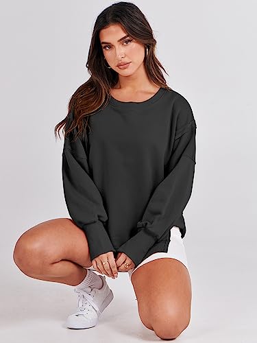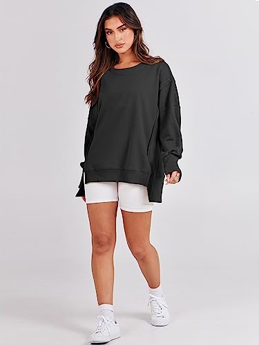 ANRABESS Women’s Oversized Sweatshirts Crew Neck Long Sleeve Shirts Casual Loose Slit 2025 Fall Clothes