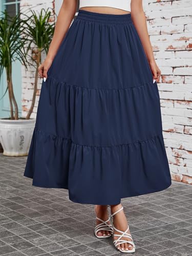 Arolina Maxi Skirt for Women Summer Boho Elastic High Waist Pleated A-Line Flowy Ruffle Swing Tiered Long Beach Skirt Dress