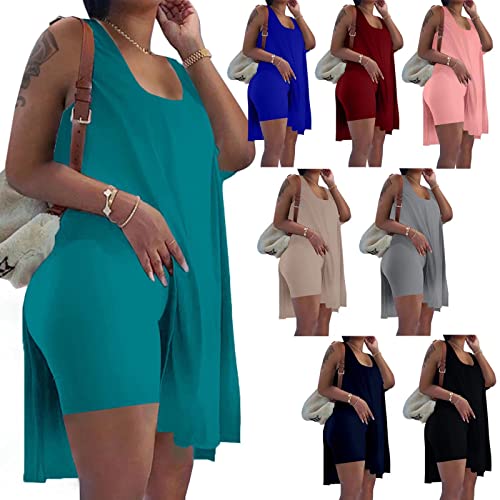 AXOSY Women’s Plus Size 2 Piece Outfits Sleeveless Tunic Tops and Bodycon Biker Shorts Sets Tracksuits