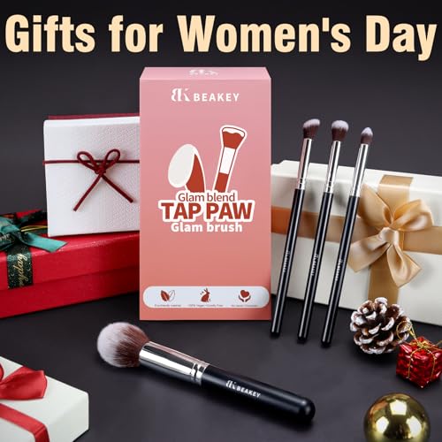 BEAKEY Makeup Brushes Set, Professional Foundation Eyeshadow Concealer Blush Powder Bronzer Applicator, 2 Blender Sponge with Beauty Paper Case