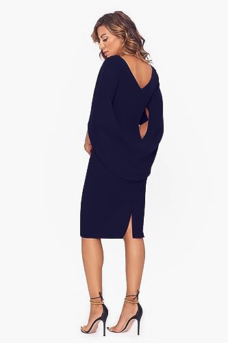 Embrace your inner goddess and exude timeless elegance in this flattering midi scuba crepe dress, featuring a cowl neck and a gracefully draped back that will leave everyone in awe of your sophisticated style.