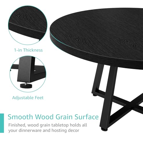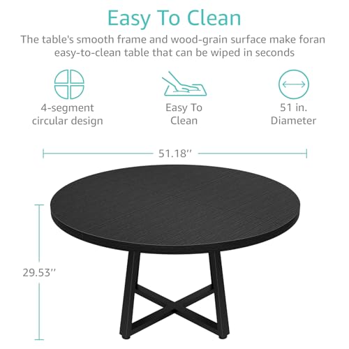 Black Round Dining Table for 6 – Modern Circle 51 Inch Large Room Kitchen Dinning Tables for 4 to 6 Person Seats Small Spaces Wood Dinner Mesa De Comedor Redonda