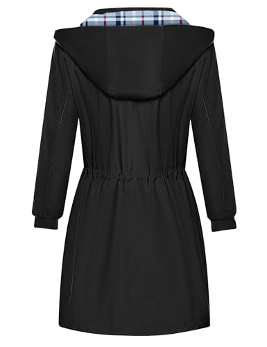 Bloggerlove Rain Jacket Women Lightweight Raincoats Outdoor Waterproof Windbreaker Hooded Plaid Lined Trench Coat S-XXL
