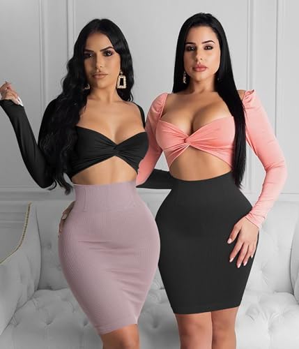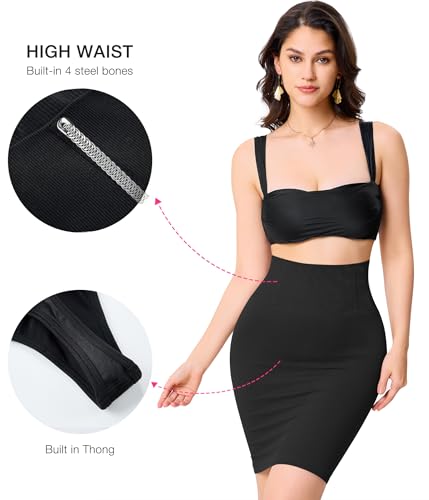 BRABIC High Waisted Mini Pencil Skirts for Women Tummy Control Bodycon Ribbed Short Skirt with Built in Thong