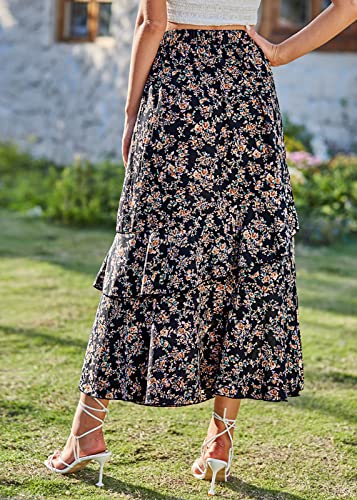BTFBM Women 2025 Summer Spring Boho Long Skirts Dress Floral Print Elastic Waist Split Ruffle High Low Beach Maxi Skirt