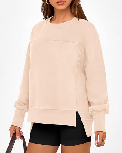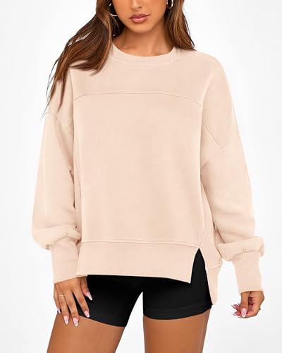 BTFBM Women’s Casual Crewneck Sweatshirts 2025 Spring Fall Clothes Long Sleeve Side Slit Workout Fleece Pullover Tops
