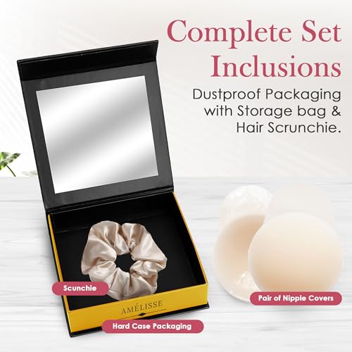 Cakes Body Nipple Covers with Lift, No Show, Silicone, Adhesive, Reusable, Washable, Sticky Strapless Bra, Seamless Pasties, Travel Box, Hair Elastic, Women gift Beige
