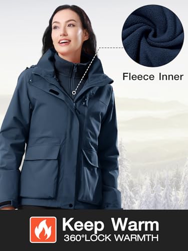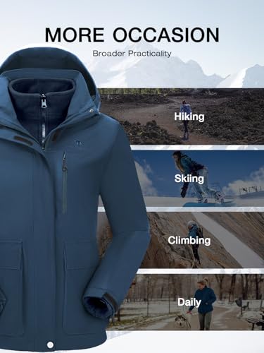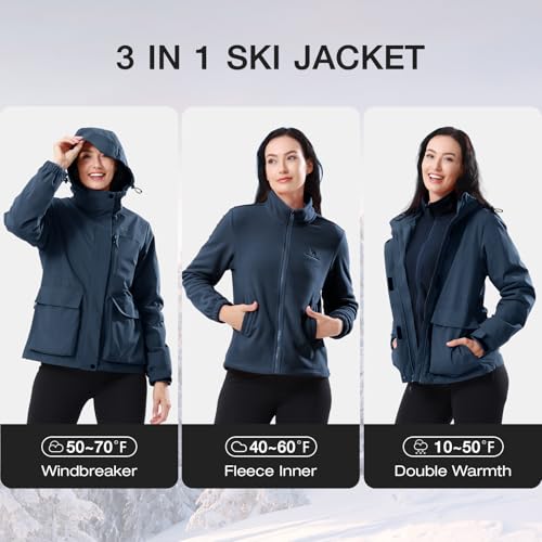 CAMEL CROWN Women’s Ski Jacket 3 in 1 Winter Jacket Waterproof Jacket Windbreaker Snow Coat with Inner Warm Fleece Coat