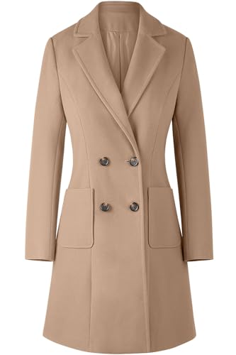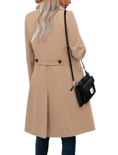 CHICZONE Women’s Notch Lapel Double Breasted Mid Long Pea Coat Wool Blend Overcoat Winter Outwear