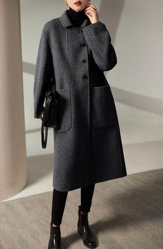 chouyatou Women’s Winter Wool Coat Single Breasted Business Casual Midi Long Winter Trench Coat