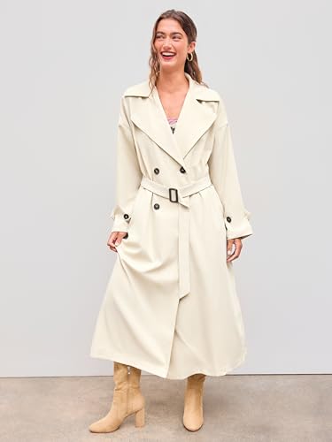 CIDER Oversized Solid Collar Long Trench Coat With Belt