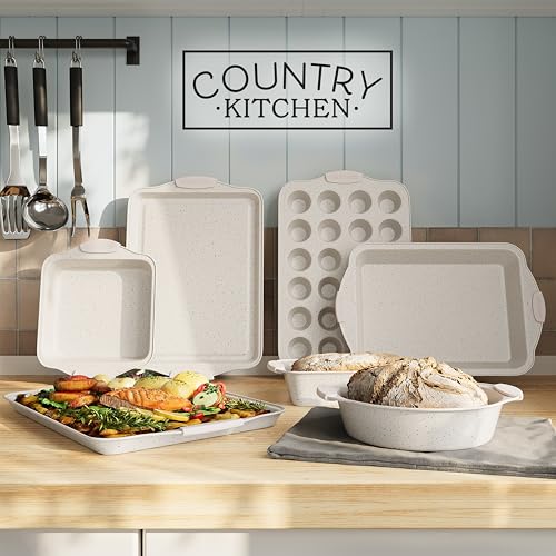 Country Kitchen Nonstick Stackable Bakeware Set – Durable, Easy Release Baking Set, Cream, 10 Pcs