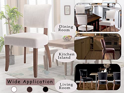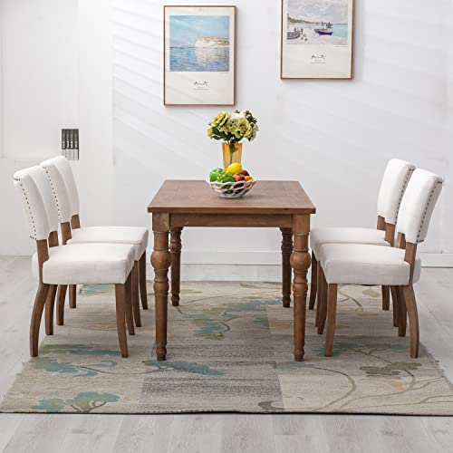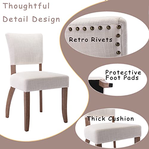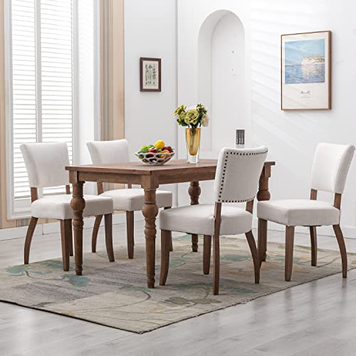 Cream Dining Chairs Set of 4, Upholstered Linen French Country Dining Chairs with Nailhead Trim Back & Solid Wood Leg Western Side Kitchen Chairs for Kitchen/Living Room/Dining Room, Cream