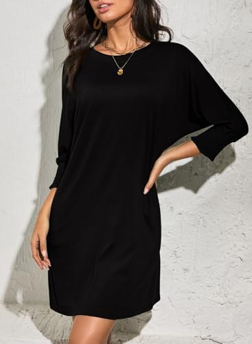 Dokotoo Womens Dresses 2025 Spring 3/4 Sleeve Fashion Dresses Crewneck Casual Mini Dress with Pockets S-XL
