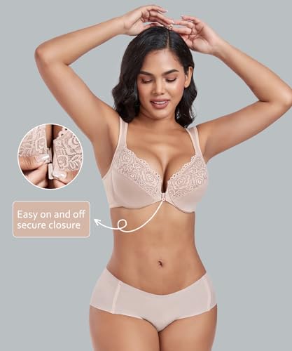 DotVol Women’s Plus Size Front Closure U-Back Underwire Wide Strap Everyday Bra
