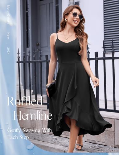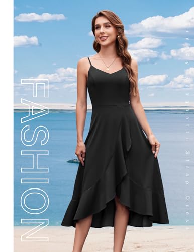 DRESSTELLS Women’s Cocktail Party Dress, Formal Wedding Guest High Low Dress, Fit Flare Holiday Prom Dress