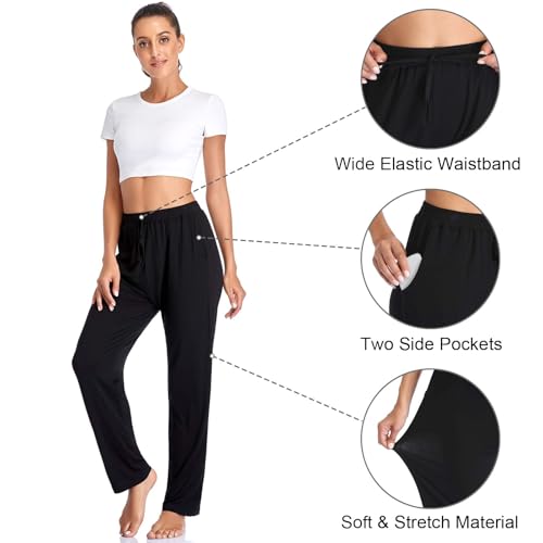 Envlon Women’s Yoga Pants with Pockets Comfy Stretch Loose Wide Leg Casual Pants Breathable Running Workout Lounge Pants