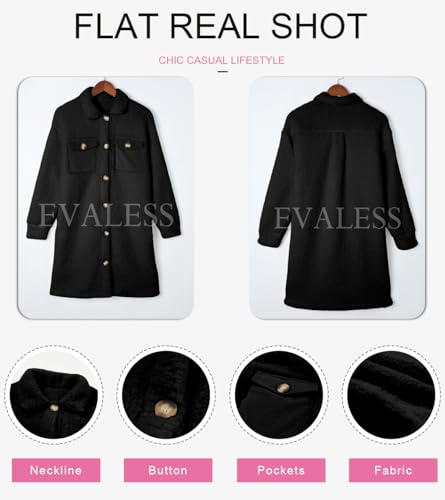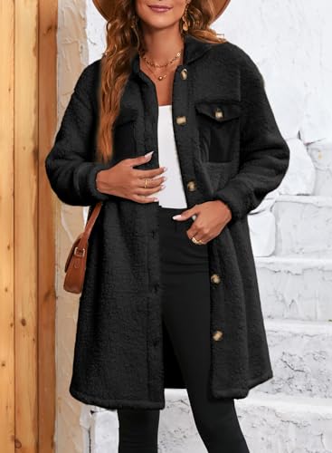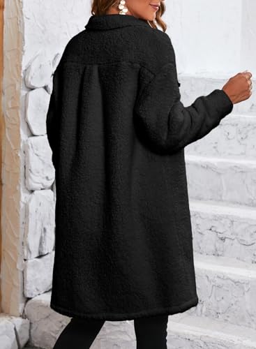 EVALESS Fuzzy Fleece Jackets for Women Fashion Long Sleeve Lapel Button Down Long Teddy Coat Faux Fur Warm Winter Outwear