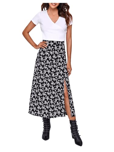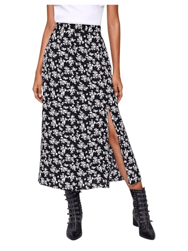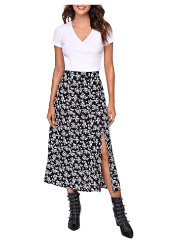 Floerns Women’s Boho Floral High Waist Split A Line Midi Skirt