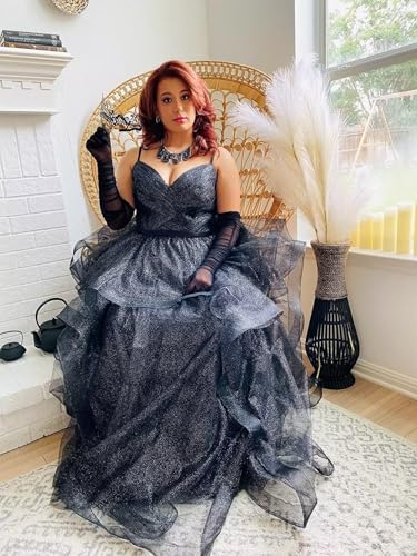 Glitter Tulle Prom Dresses Spaghetti Straps Ball Gowns for Women Puffy Tiered Formal Evening Party Dress