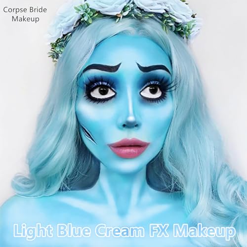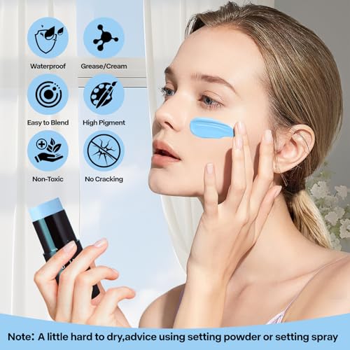 Go Ho Cream-Blendable Light Blue Face Paint Stick (1.06 Oz),Full-coverage Pale Blue Face Body Paint Stick for Halloween Cosplay SFX Corpse Bride Sally Makeup,Waterproof Blue Eye Black Stick