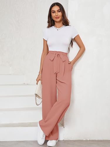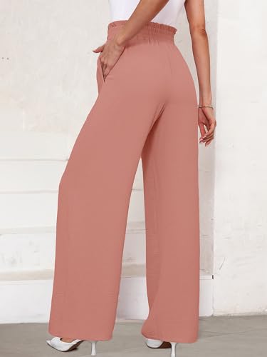 KORSIS Women’s Wide Leg Lounge Pants Lightweight High Waisted Loose Work Elastic Trousers with Pockets (S-2XL)