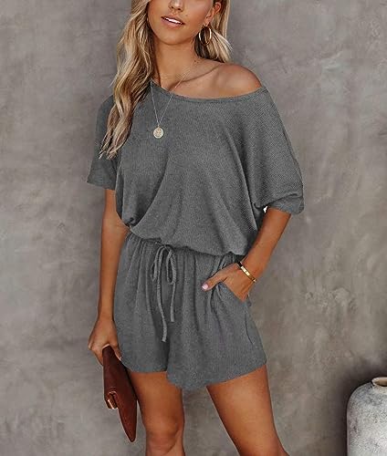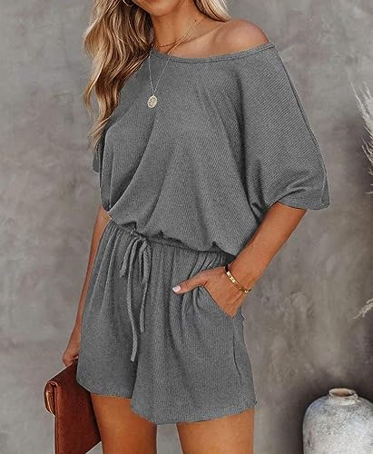 Lacozy Women’s 2025 Summer Short Sleeve Off The Shoulder Rompers Casual Shorts One Piece Overall Jumpsuits Dressy