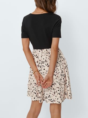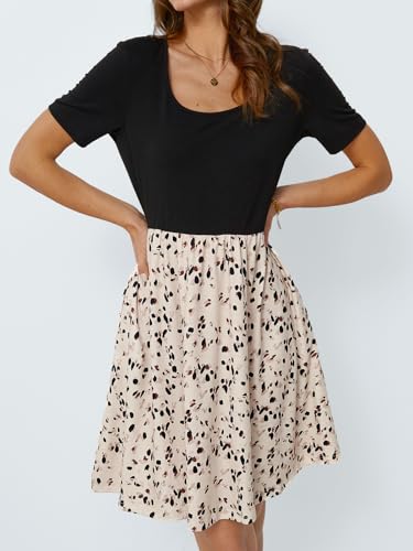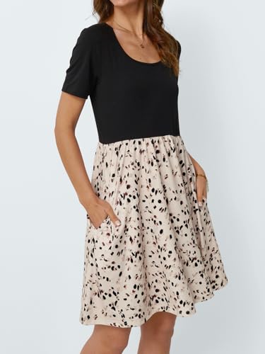 LILLUSORY Womens Scoop Neck Short Sleeve Floral Mini Dress with Pockets