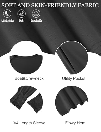 LUYAA Womens Summer Mini Dresses Boatneck 3/4 Puff Sleeve Floral T Shirt Dress with Pockets Boho Dresses Fashion Trendy 2025