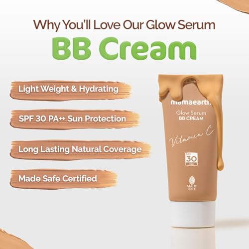 Looking for a lightweight BB Cream that gives your skin natural coverage while keeping it hydrated? We’ve made it happen! Meet Mamaearth Glow Serum BB Cream that does it all – it gives your skin a natural tint, hydrates, and protects your skin from sun damage. Yes, you read that right! Crafted with the Vitamin C this BB Cream maintain your skin tone and helps add a natural glow. Also infused with a natural ingredient, Turmeric, the BB Cream helps revive your skin’s natural glow, leaving it luminous. It has a unique serum-like texture that blends into your skin effortlessly without being cakey or patchy. It also comes with SPF 30 and PA++ sun protection that shields your skin from harsh UV rays. The lightweight yet hydrating BB cream stays on all day and makes for the ideal everyday makeup, whether it’s work, college, or just a day out! It is also Made Safe Certified, which means it’s free of chemicals and is suitable for all skin types.