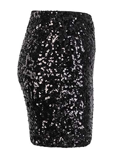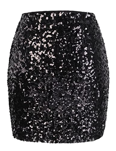 MANER Women’s Sequin Skirt Sparkle Stretchy Bodycon Mini Skirts Night Out Party