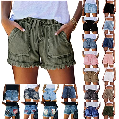 Mmoneyake Womens Jean Shorts Casual Lightweight Shorts Baggy Trendy Shorts Elastic Waist Drawstring Pants Summer Beach Shorts