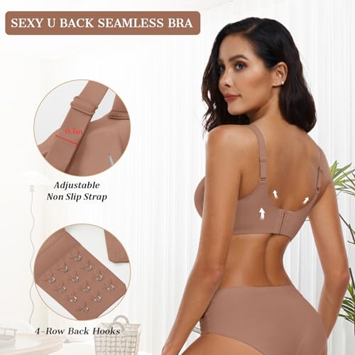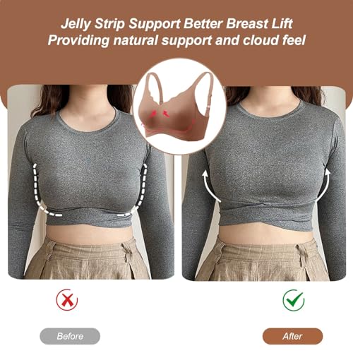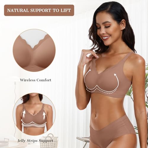 OEAK Womens Comfortable Wireless Bras Push Up Seamless Bralettes Soft V Neck Brassiere Scalloped Full Coverage Everyday Bra