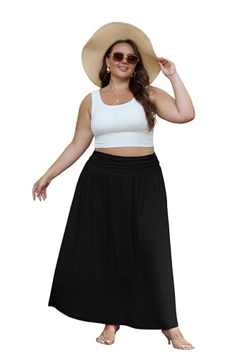 OLRIK Plus Size Maxi Skirt with Pockets 2025 Summer Elastic High Waisted A-Line Flowy Long Skirts