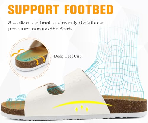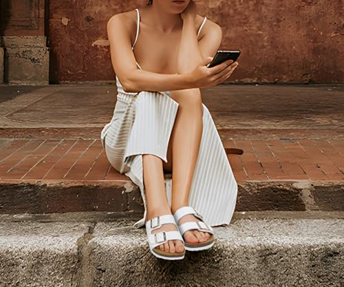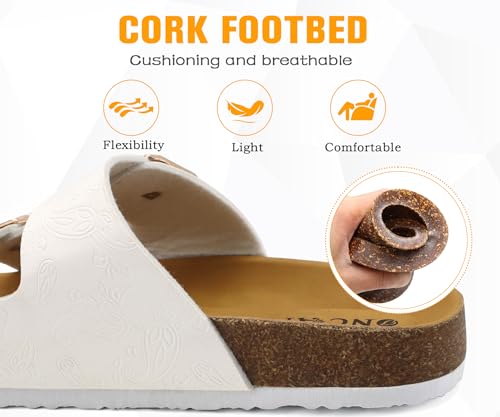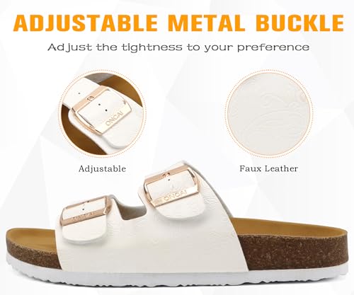 ONCAI Womens Flat Slide Sandals with Arch Support 2 Strap Adjustable Buckle Slip on Slides Shoes Non Slip Rubber Sole