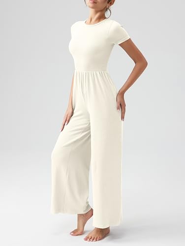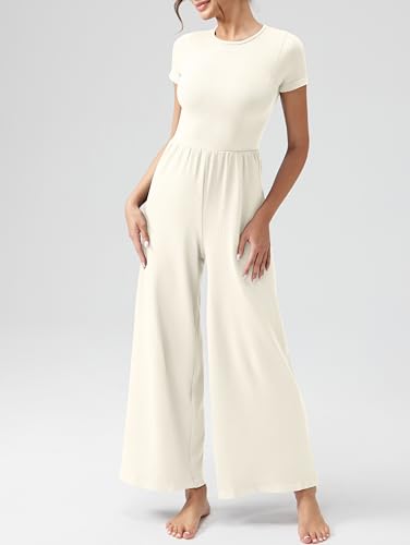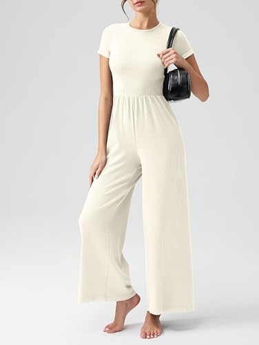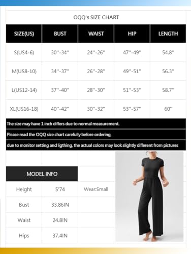 OQQ Women’s Summer Jumpsuits Dressy One Piece Outfits Casual Short Sleeve Crew Neck Wide Leg Rompers