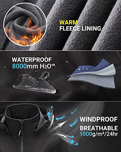 Outdoor Ventures Women’s Softshell Jacket with Removable Hood, Insulated Windbreaker Waterproof Warm Fleece Lined Coat