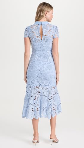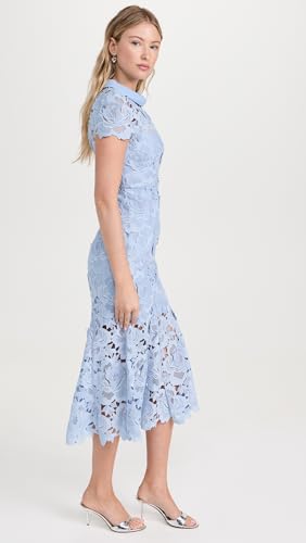 Self Portrait Women’s Blue Flower Lace Contrast Collar Midi Dress