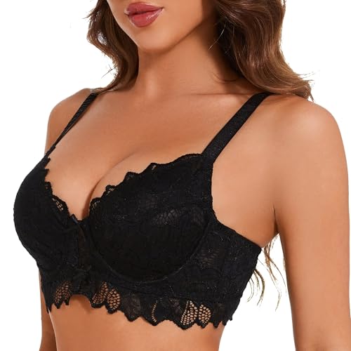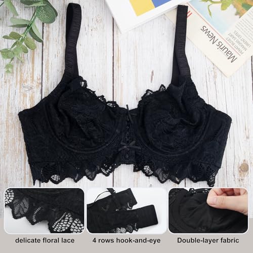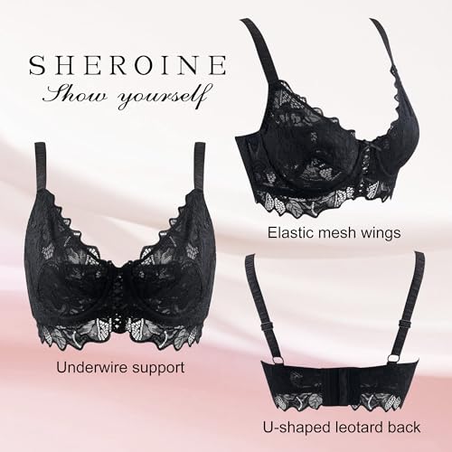 sheroine Women’s Lace Sexy Underwire Mesh Bra Full Coverage Sheer Plus Size Unpadded Bras