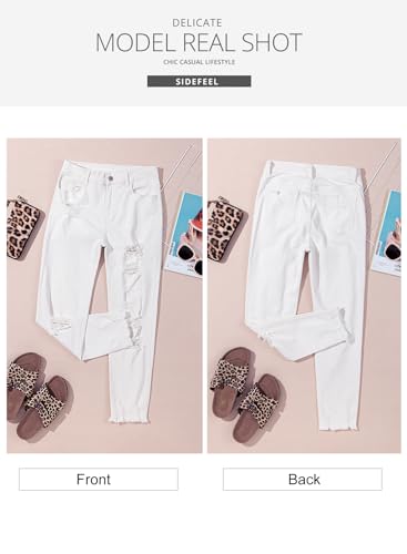 Sidefeel Women’s Ripped Jeans Straight Leg Distressed Boyfriend Denim Pants