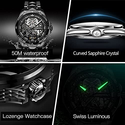 Skeleton Mens Watch Automatic Mechanical Self Winding Luxury Sapphire Crystal Tungsten Steel Waterproof Luminous Dress Wrist Watch