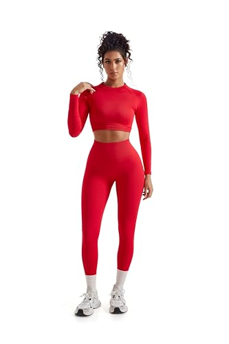 SUUKSESS Women 2 Piece Workout Sets Hidden Scrunch Butt Lifting Seamless Leggings Long Sleeve Yoga Crop Tops