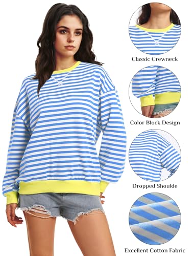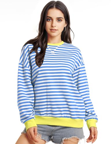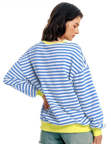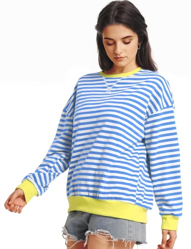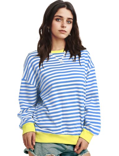 Women Oversized Striped Sweatshirt Long Sleeve Crewneck Shirt Fashion Fall 2024 Pullover Top Preppy Y2K Clothes